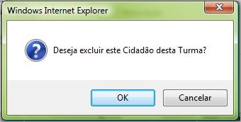 cidadão da Turma, basta seleciona a opção Após a confirmação do usuário é apresentado uma outra mensagem informando que a exclusão foi realizada com sucesso. |