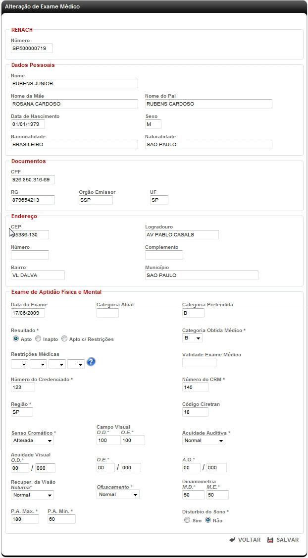 Nesta opção o sistema permite que o médico altere o laudo médico de um cidadão, corrigindo as informações que eventualmente tenham sido inseridas com algum erro. Essas alterações podem ser feitas apenas pelo mesmo médico que inseriu o laudo no sistema.