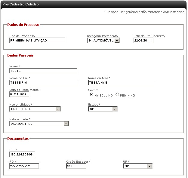 Confirmar Pré-Cadastro Nesta opção o funcionário da unidade de trânsito realiza a confirmação